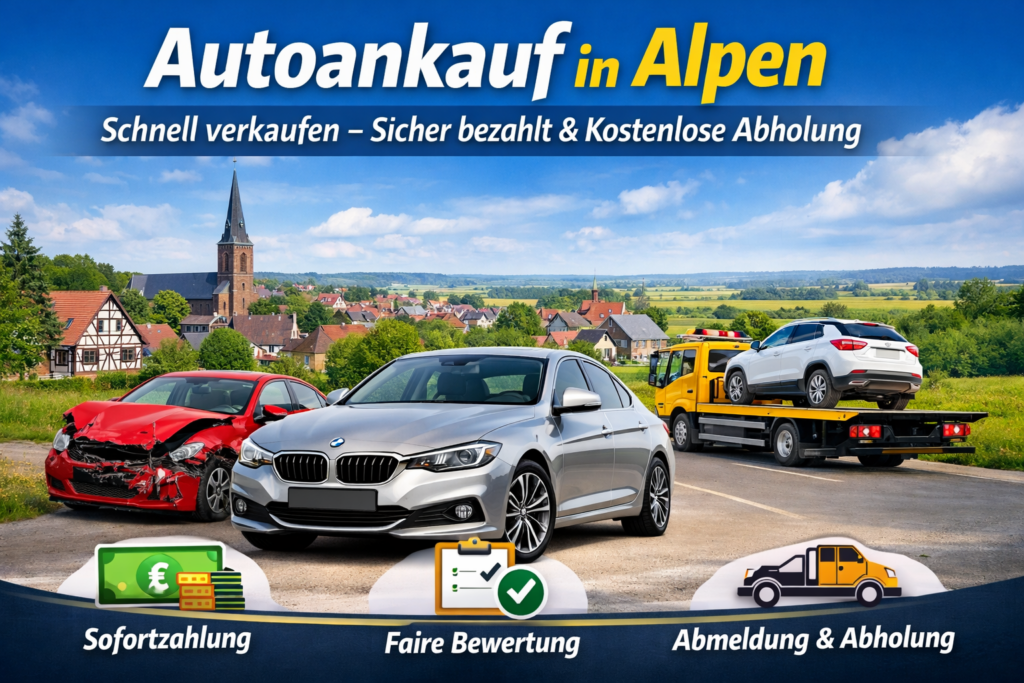 Alpen am Niederrhein steht für kurze Wege, ruhige Wohnlagen und eine Region, in der Alltag und Mobilität eng zusammenhängen. Wenn Sie Ihr Auto in Alpen verkaufen möchten, zählt vor allem eins: eine Abwicklung, die planbar ist – ohne Inserate, ohne endlose Besichtigungen, ohne Verhandlungsstress.